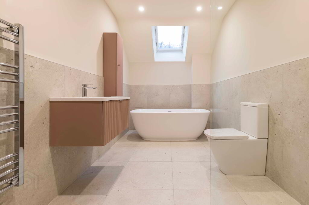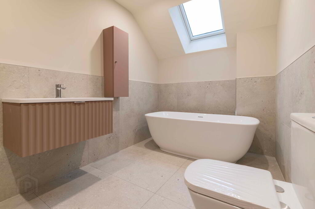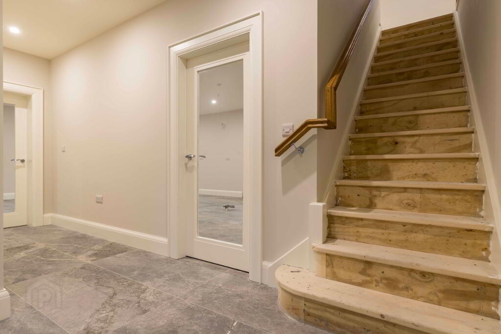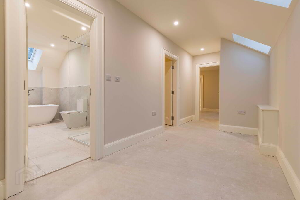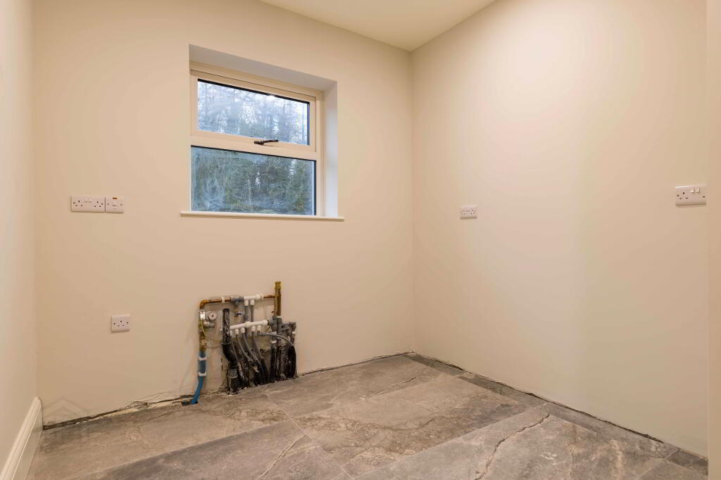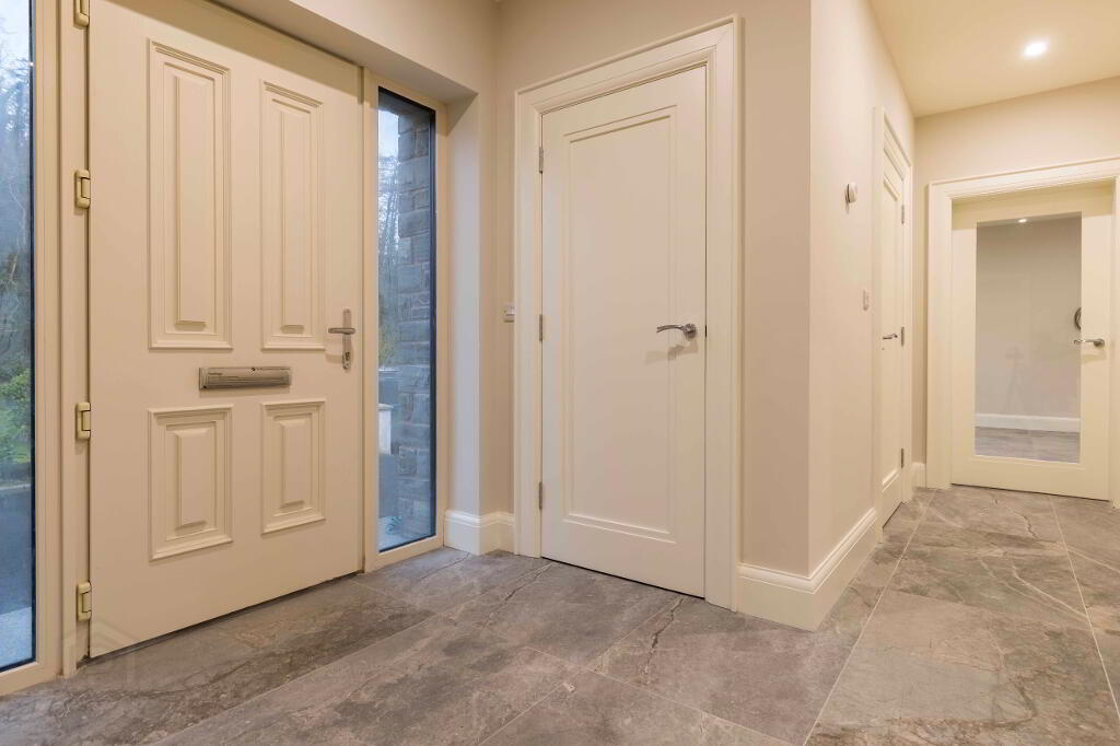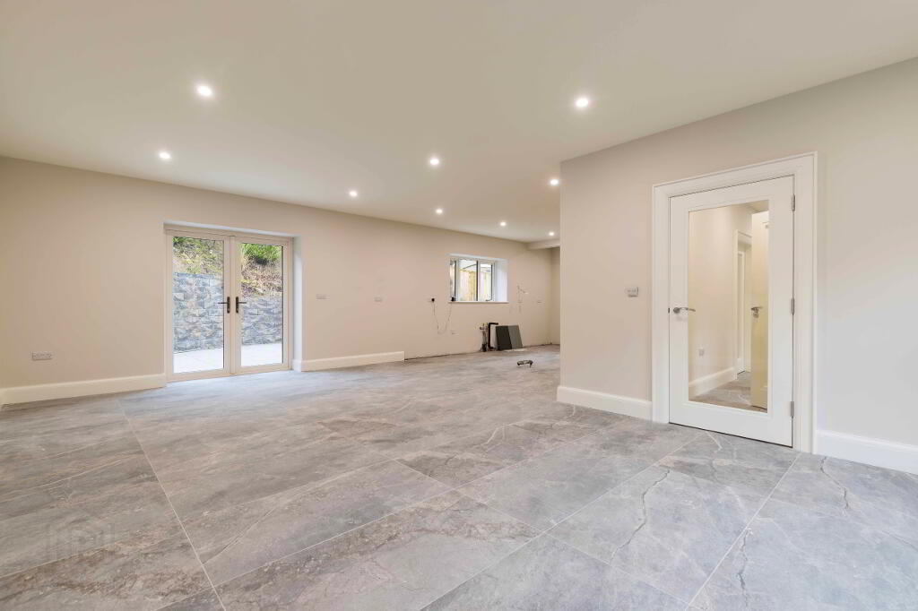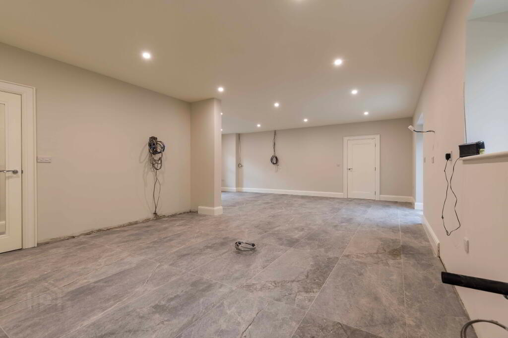 The property has been completed to a high specification throughout, with premium sanitaryware, quality tiling, and elegant neutral décor applied to all walls, ceilings, and woodwork, creating a refined canvas ready for immediate occupation. A key feature of this sale is the rare opportunity for the purchaser to bespoke the heart of the home, selecting and installing their own kitchen and utility room to suit individual taste and lifestyle. A proposed kitchen layout is available to view online, with sample kitchen doors available for inspection.
