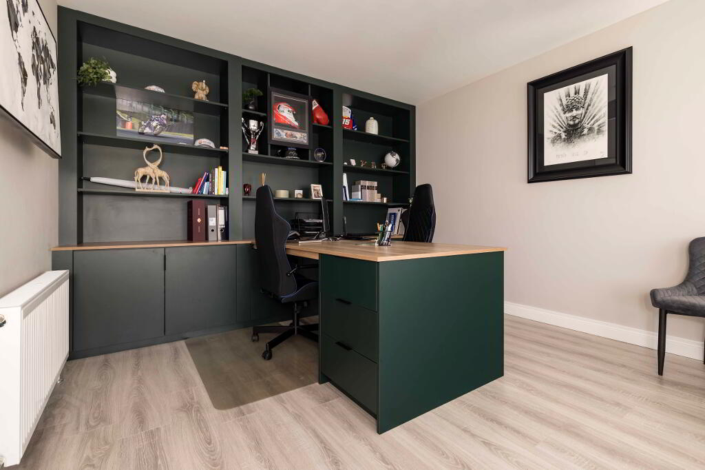 Positioned at the entrance of the popular Edenbrook development, this spacious four-bedroom family home is presented and finished to a very high standard throughout, with many added extras fitted, such as additional solar panels with battery back-up, kitchen/sanitary upgrades and fitted furniture to many rooms etc.