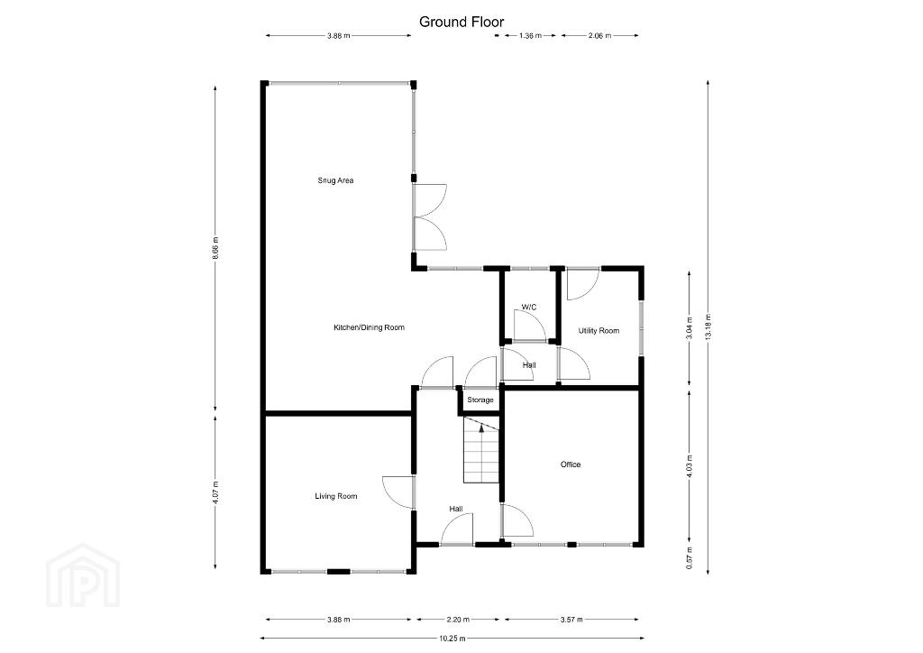Office (could be used as reception room /Playroom) 13’2 x 11’7. Or 4.03m x 3.57m.