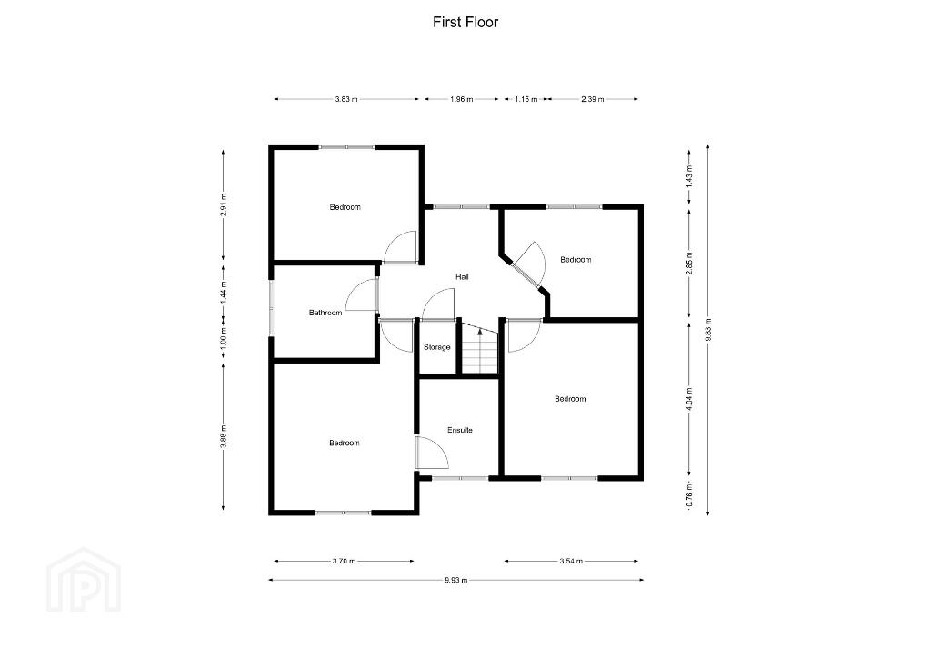 Bedroom 3. 12’5 x 9’6. Or 3.83m x 2.91m. View to front.