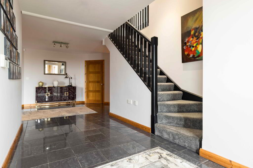 Ground floor bedrooms offer versatility, easily transformed into study or office space, while the property also features a main bathroom, three ensuite bedrooms, and a cloakroom off the kitchen.
