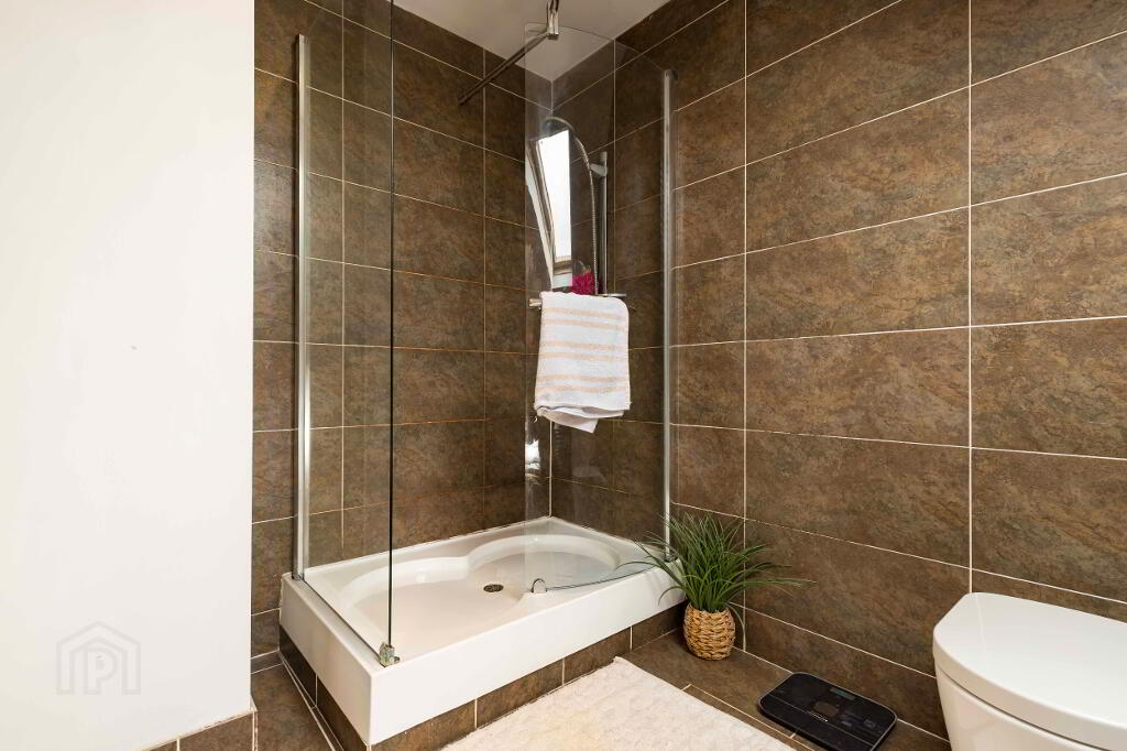 Ensuite. WC, wash hand basin and shower. Heated towel radiator.